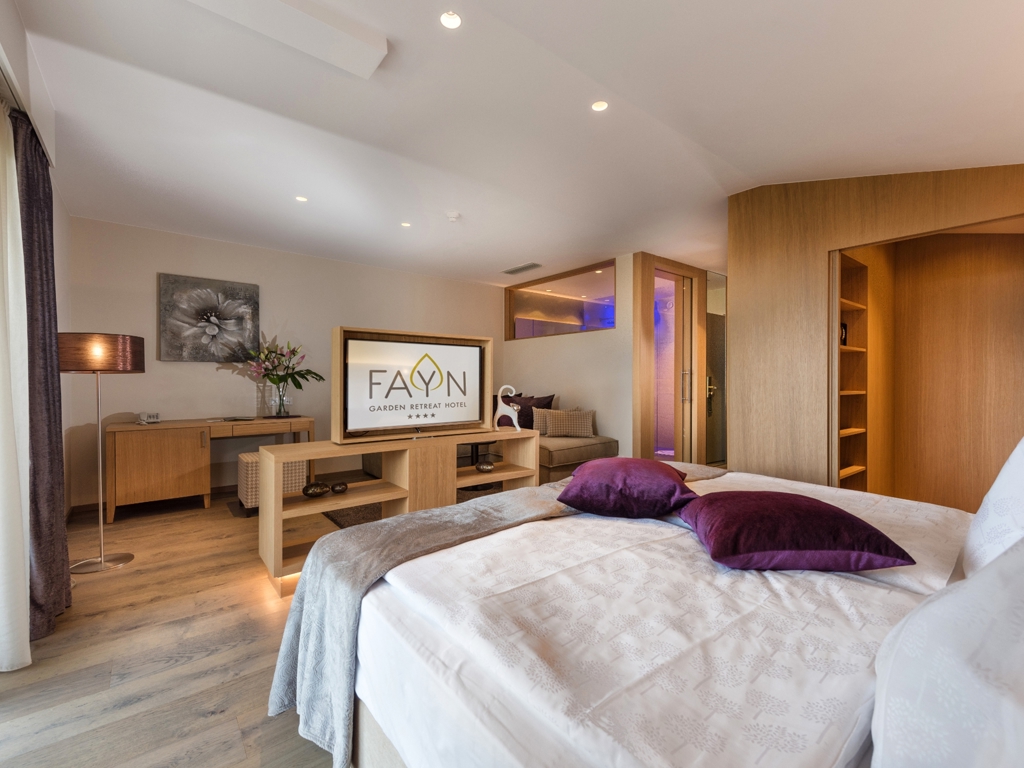In our wellness area "FAYN emotion spa", you can refill your energies and harmonize body and mind. Besides pleasant massages and beauty treatments, there are waiting a heated indoor pool with garden view, cosy restrooms with waterbeds and loungers, Kneipp foot baths, several saunas, aroma and brine steam baths, a refreshing ice grotto and much more. Our large garden with heated infinity pool and whirlpool with massage loungers are another highlight.