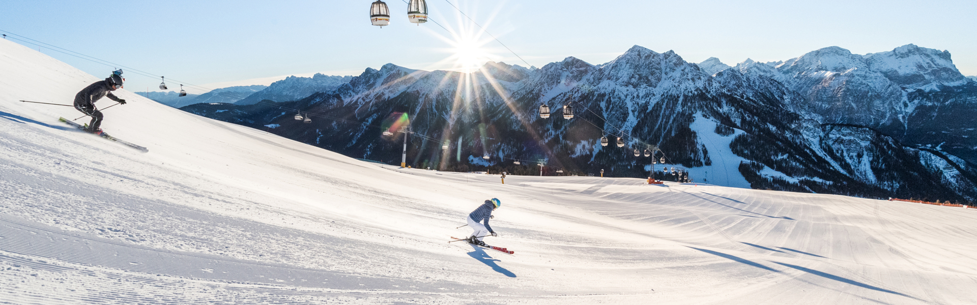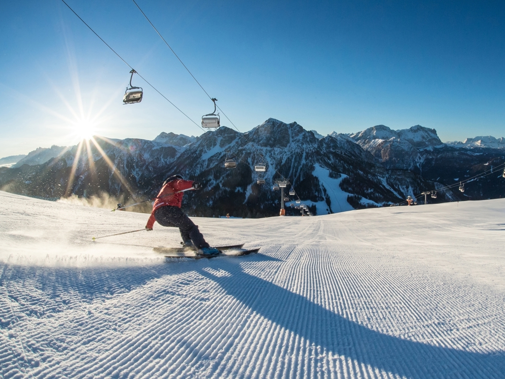 When the first snowflakes fall and magically transform the green hill into a mighty white giant, there is no more halt: Ski and snowboard fans follow the call of the mountain and explore the various slopes of over 100 km. It is a long tradition to never enter a new ski season without coming up with yet another slope or technical novelty. It might go without saying that Kronplatz is one of the most modern ski areas in Europe! The new railway station in Percha brings you directly to the slopes.
