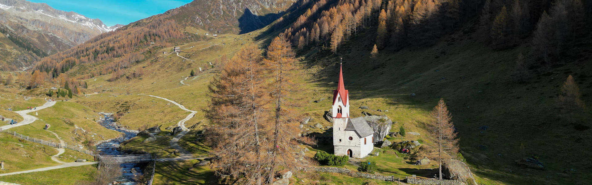 Prettau is the most northern commune in Italy and also the smallest in Tauferer Ahrntal. The commune comprises the center, the hamlet Kasern and the alpine settlements Prastmann with Trinkstein and the place of pilgrimage Heiliggeist. Hiking paths lead from here all the way to the Austrian border, where the mountain lodge Birnlücke provides a resting place and great view.