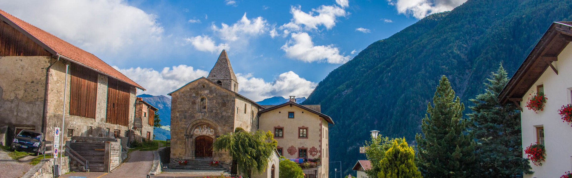 In the West of South Tyrol, amidst the mighty massif of Ortler and the Swiss mountains, surrounded by pristine nature and covered in fantastic tales and myths, lies the village Taufers im Münstertal. The place is situated at the entrance to the valley Münstertal, which lies partly in South Tyrol, partly in Switzerland. It can be reached via Laatsch (commune of Mals) and Glurns, the only city in Vinschgau and the smallest in South Tyrol.