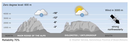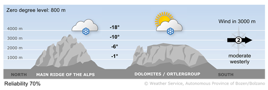 A weak disturbance will reach the Alps with a north-westerly high-altitude current.